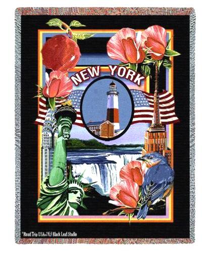 Colorful tapestry throws featuring landmarks, icons and more from your favorite state, New York. More states available. State throws, tapestries and blankets are 100% cotton, made in the USA.Item No: 4290-T