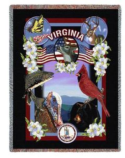 Colorful tapestry throw featuring landmarks, icons and more from your favorite state, Virginia. More states available. Tapestry throw is 100% cotton, made in the USA.Item No: VA-T