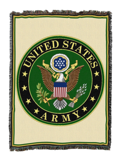 Army Logo Blanket features an army emblem. Perfect gift for a member of the services or their family. God Bless America and Our Troops!Item No: 11245-T
