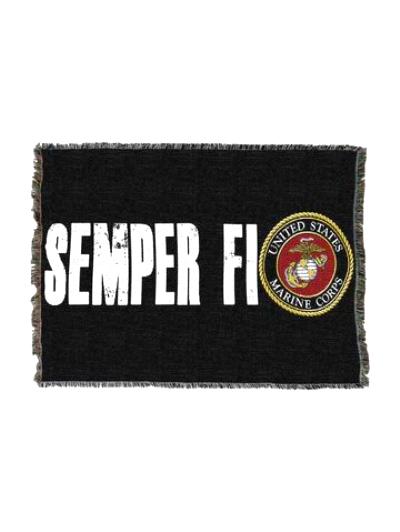 Marine Corps Semper Fidelis Blanket - "Semper fidelis" is a Latin phrase meaning "Always Faithful" and is the official motto of the U.S. Marine Corps.Marine Corps Semper Fidelis Tapestry Throw Style 2
