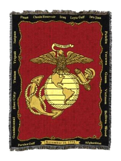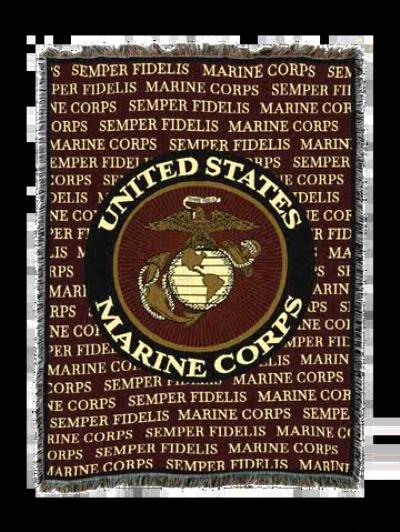 United States Marine Corps Land, Sea & Air is 100% cotton blanket, made in the USA. God Bless America and Our Troops!Marine - USMC Marine Tapestry Throws