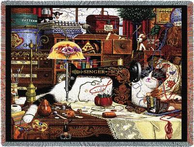 Ethel the Gourmet Cat by © Charles Wysocki a lifelong love of Americana and Primitive art has left a tremendous legacy. What a hungry cat. Designer wall hanging and decorative tapestries are 100% cotton made in the USA.Frederick the Literate Tapestry Throw