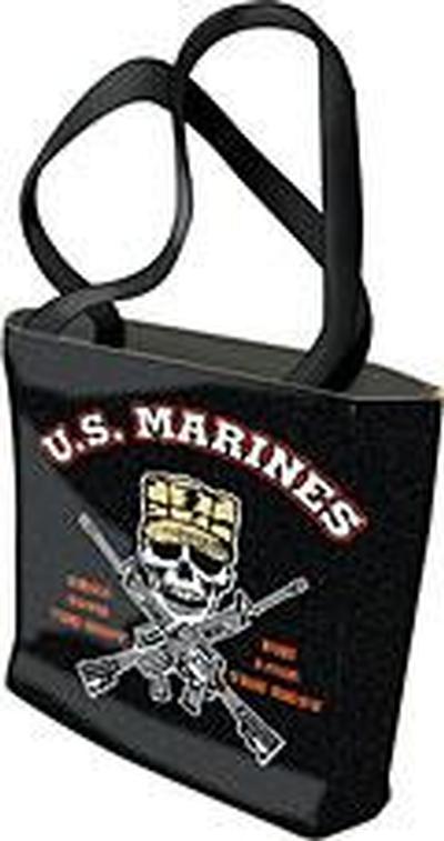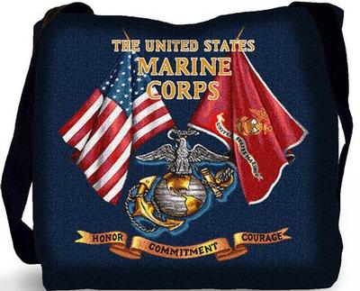 United States Military Marine Corps Emblem tapestry tote bags are tastefully designed, and woven. Cotton tote bags have a design on each side. All totes are 100% cotton, made in the USA. Matching tapestry throws and wall hangings available.Item No: 281-B