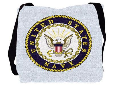 United States Military Navy Emblem tapestry totes bags are tastefully designed, and woven. Cotton tote bags have a design on each side. All totes are 100% cotton, made in the USA. Matching tapestry throws and wall hangings available.