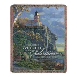 Psalm 27:1 Guiding Light Tapestry Throws which reads :“The Lord is my light and salvation - whom I shall fear." Every coverlet and afghan with scripture make unique gifts. Scenic designer throws, blankets, coverlets, afghans and tapestries are 100% cotton, made in the USA. Give a gift of love.